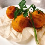 黒トリュフとフォアグラのライスコロッケ 黒トリュフを入れていたイタ...